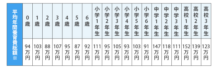 7歳から12歳までの養育費は、平均100万円となっています。その一方で、ここから教育資金が別途かかってきます。
